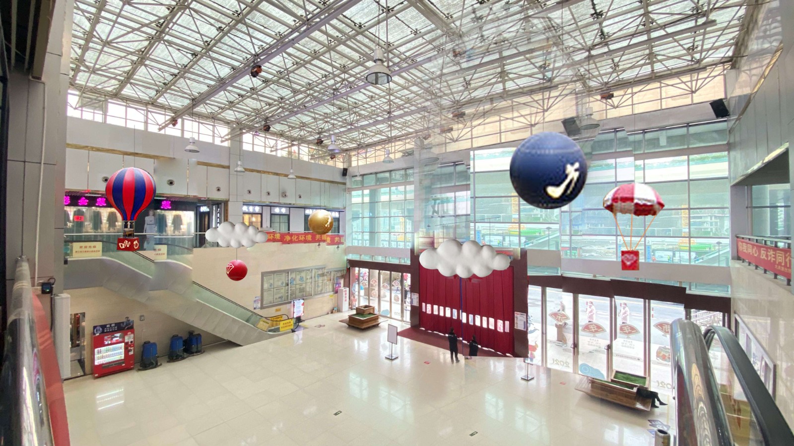 中國傳統(tǒng)春節(jié)已經過去,原本“張燈結彩”的裝飾雖喜慶但不夠新鮮奪目。為了打破顧客的審美疲勞,商城對現有的美陳進行了升級,通過對材料和色彩的運用,這次升級選擇了五彩繽紛的熱氣球、降落傘,搭配高低錯落的云朵掛飾,不僅能抓住消費者的眼球,也營造出了獨特的夢幻之感讓商城煥然一新。